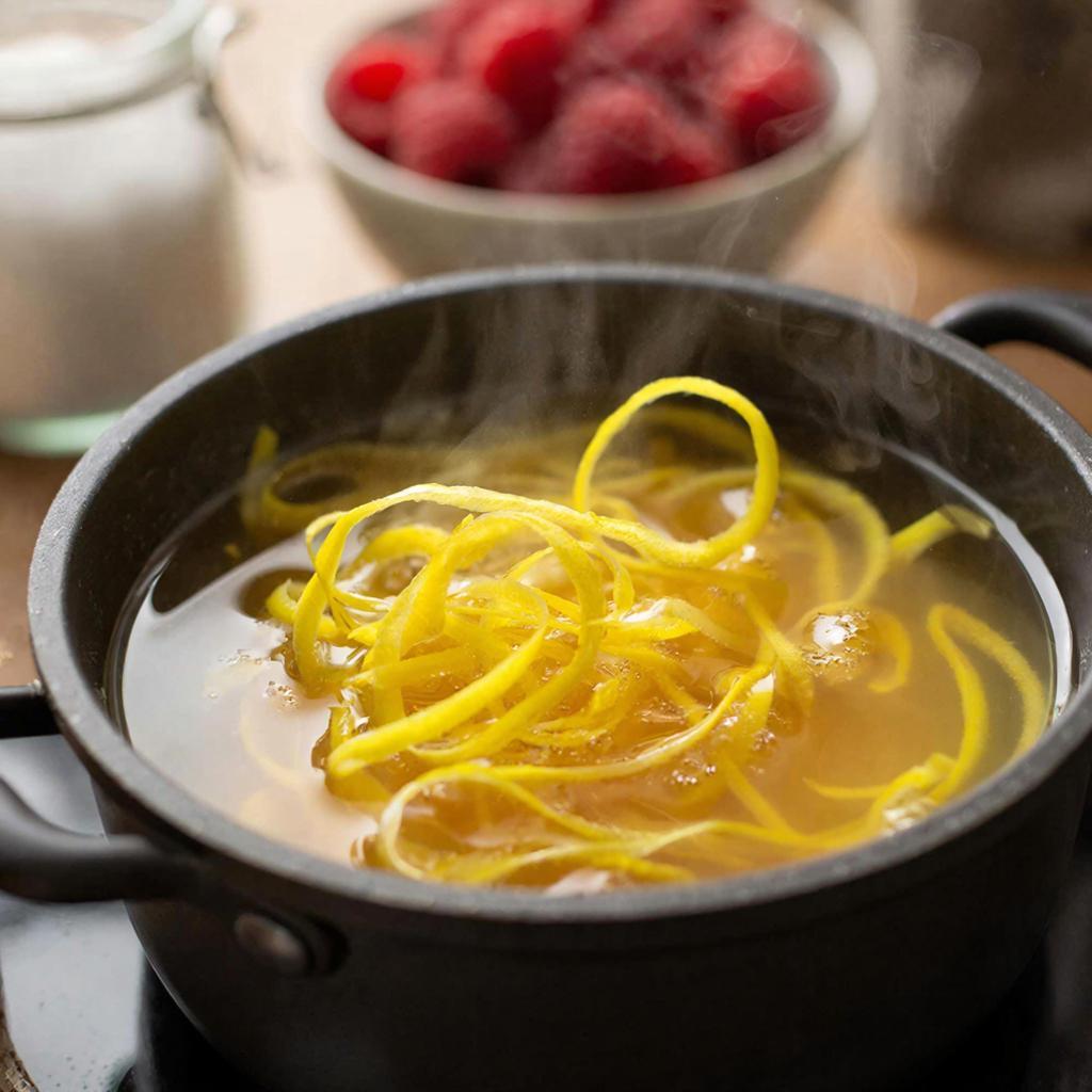 Приготовление сахарного сиропа с лимонной цедрой