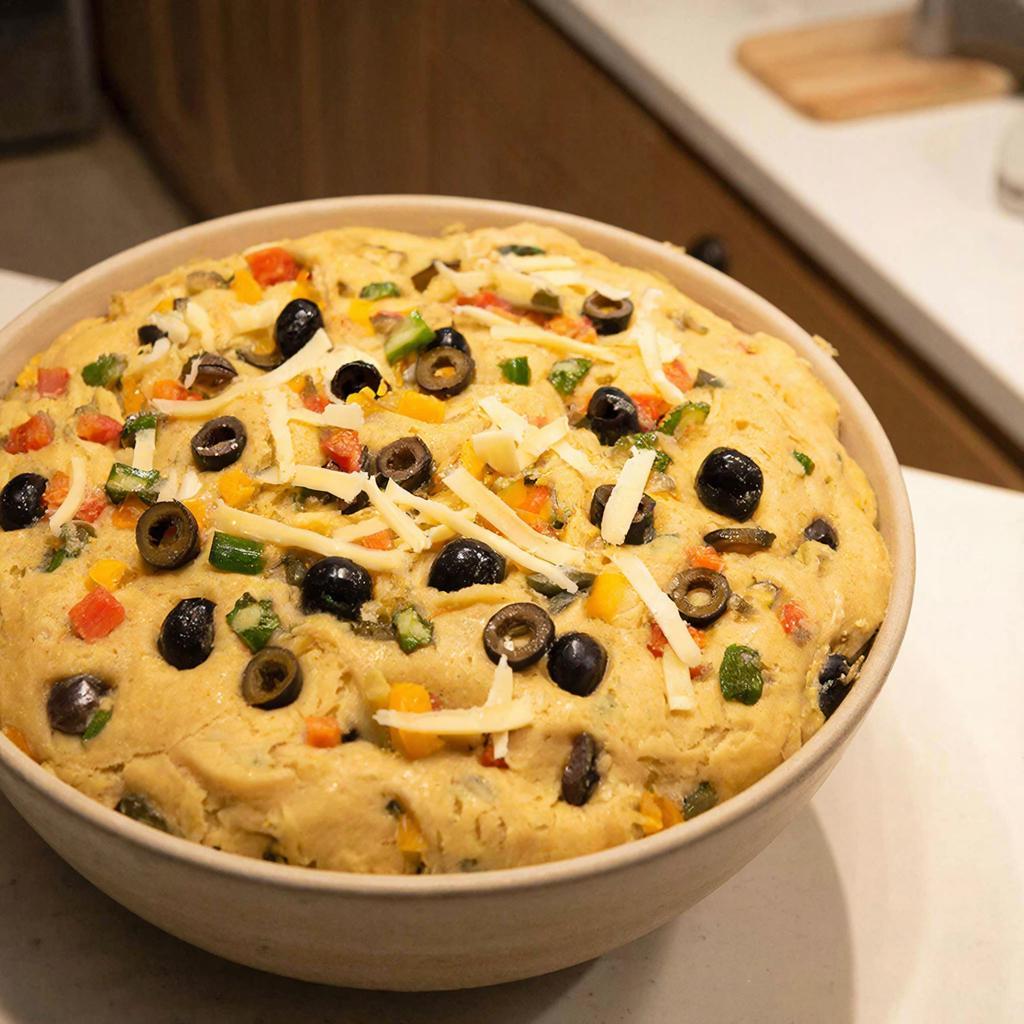 Короткий ответ: здесь работают сразу несколько вкусовых слоев – овощи, сыр, маслины и специи. В итоге хлеб получается не просто нейтральным, а по-настоящему интересным.
