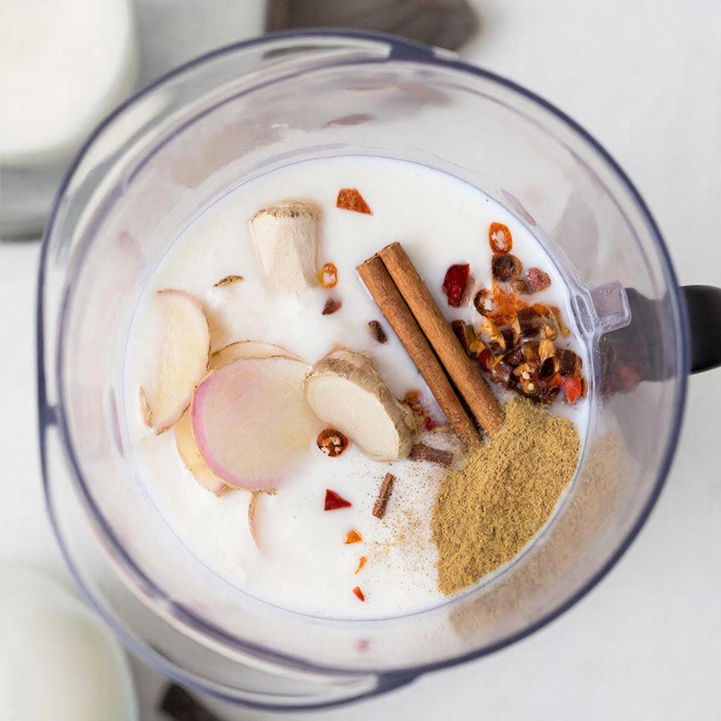 Все специи добавляют прямо в чашу блендера перед взбиванием.