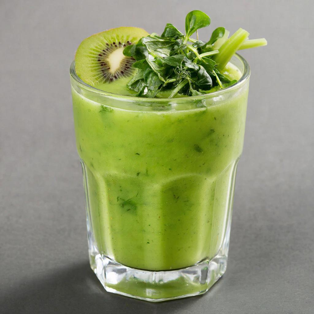 У этого напитка очень простая основа, поэтому текстура здесь особенно важна. Если воды слишком мало, коктейль получается плотным и тяжелее пьется, а если слишком много – вкус зелени и киви становится слабее.