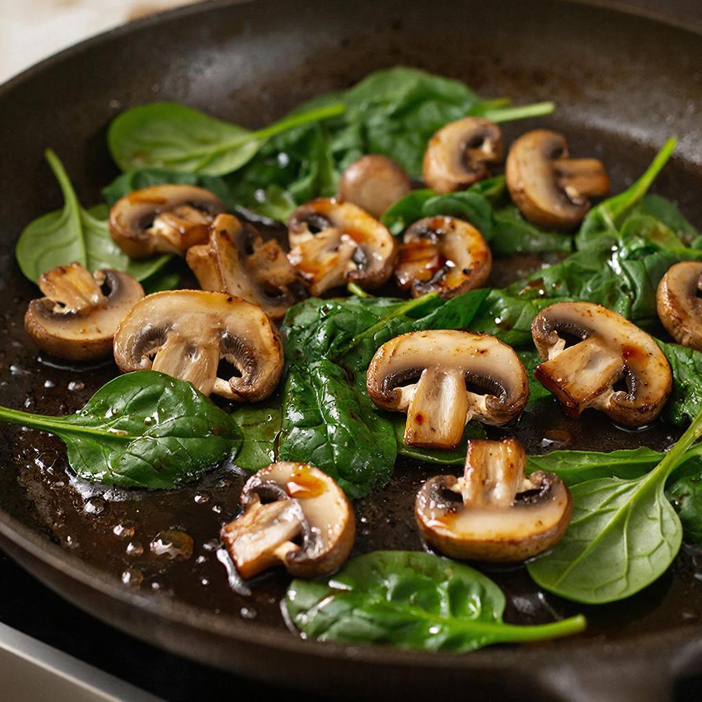 Как приготовить грибы со шпинатом и терияки