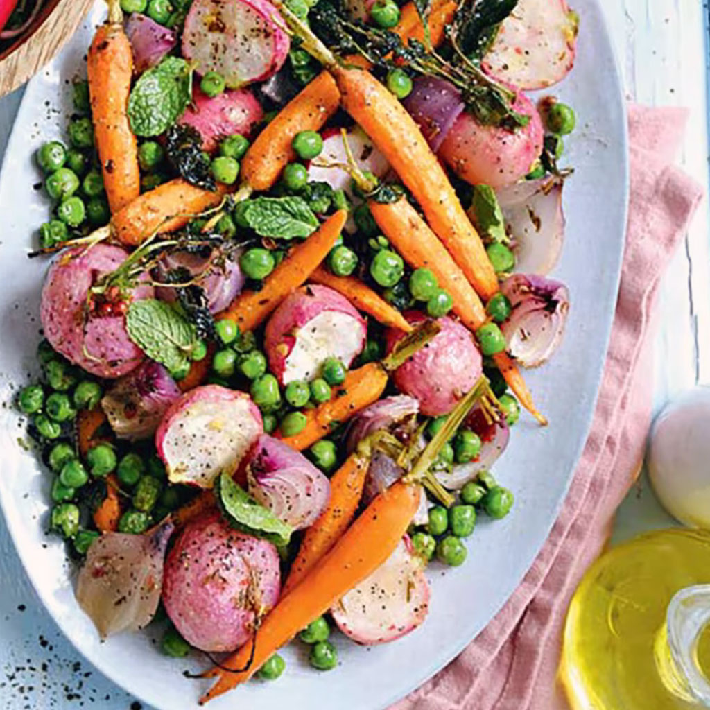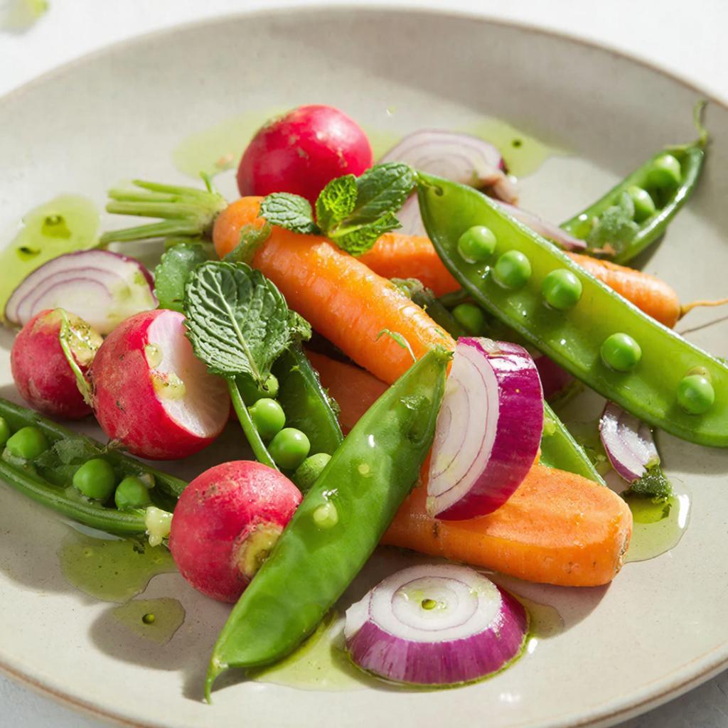 Что делает глазированные весенние овощи с мятной заправкой особенно вкусными