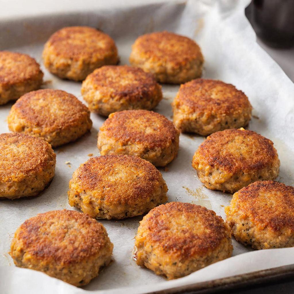 Разогрейте духовку до 180°C. Запекайте котлеты 15–20 минут до румяной корочки.