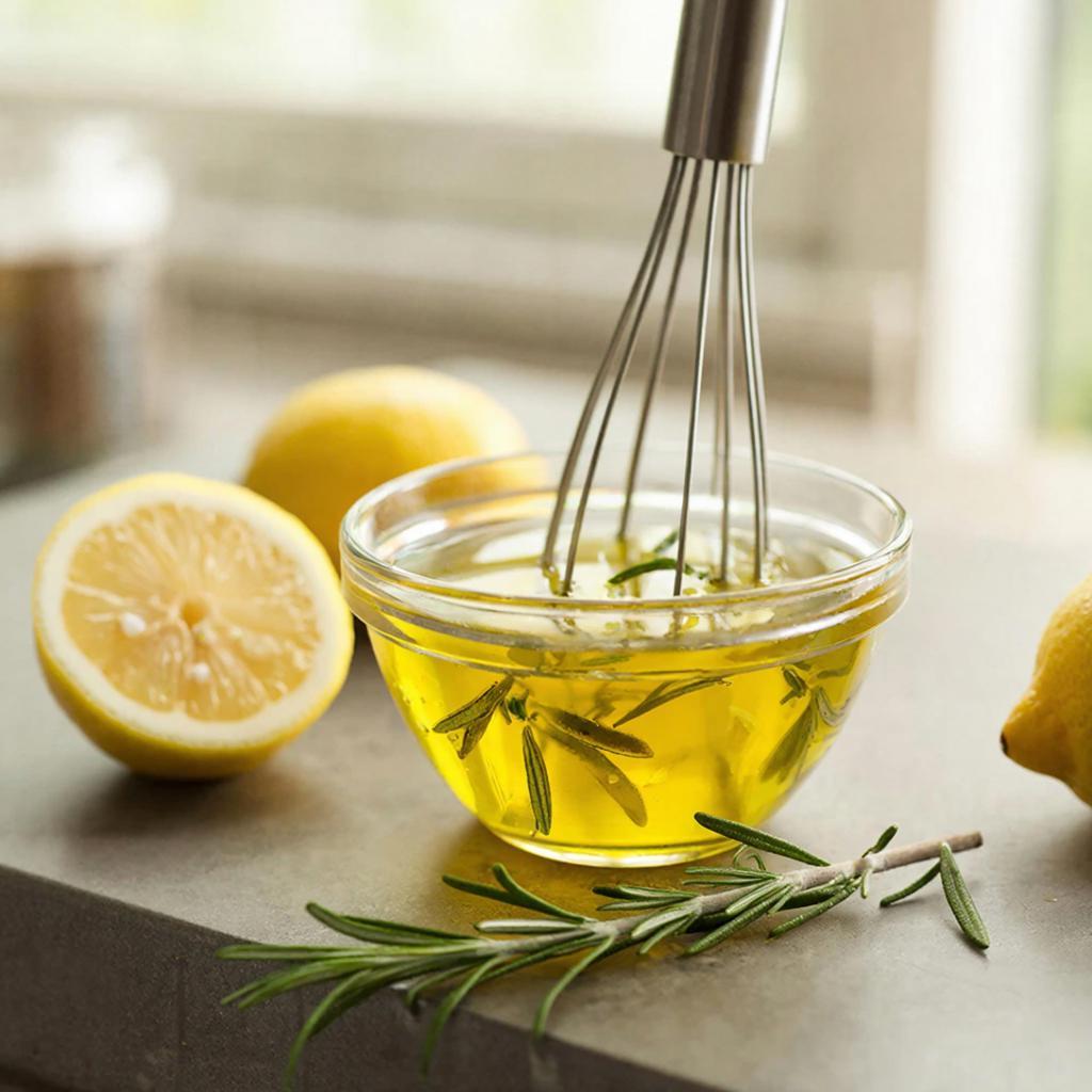 Приготовление заправки с лимонным соком, розмарином и оливковым маслом