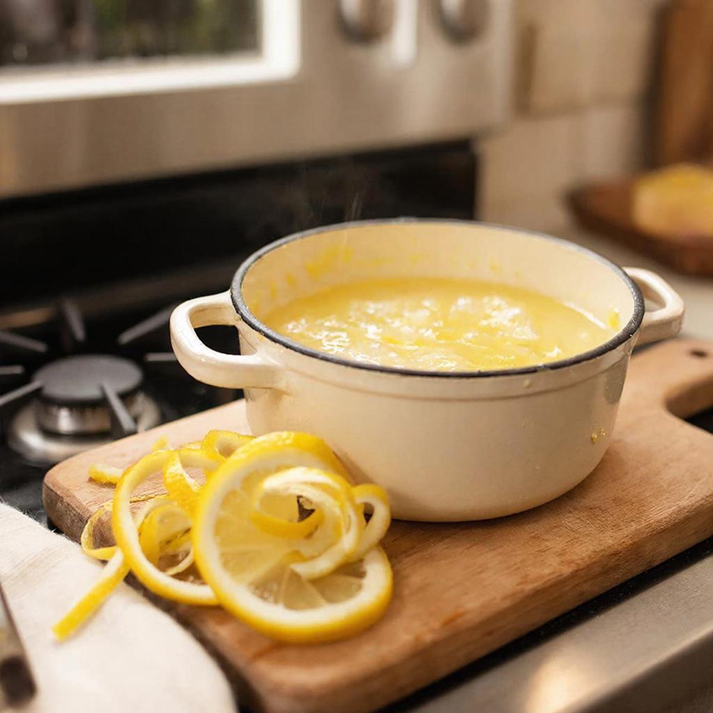 Начинаем с соуса – он должен немного остыть, прежде чем мы добавим его к фруктам. Лимон тщательно промойте и снимите с него около 1 чайной ложки цедры мелкой тёркой. Старайтесь не задевать белую часть – она может дать горечь.