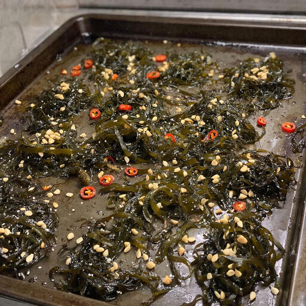 Запекание морской капусты с кунжутом