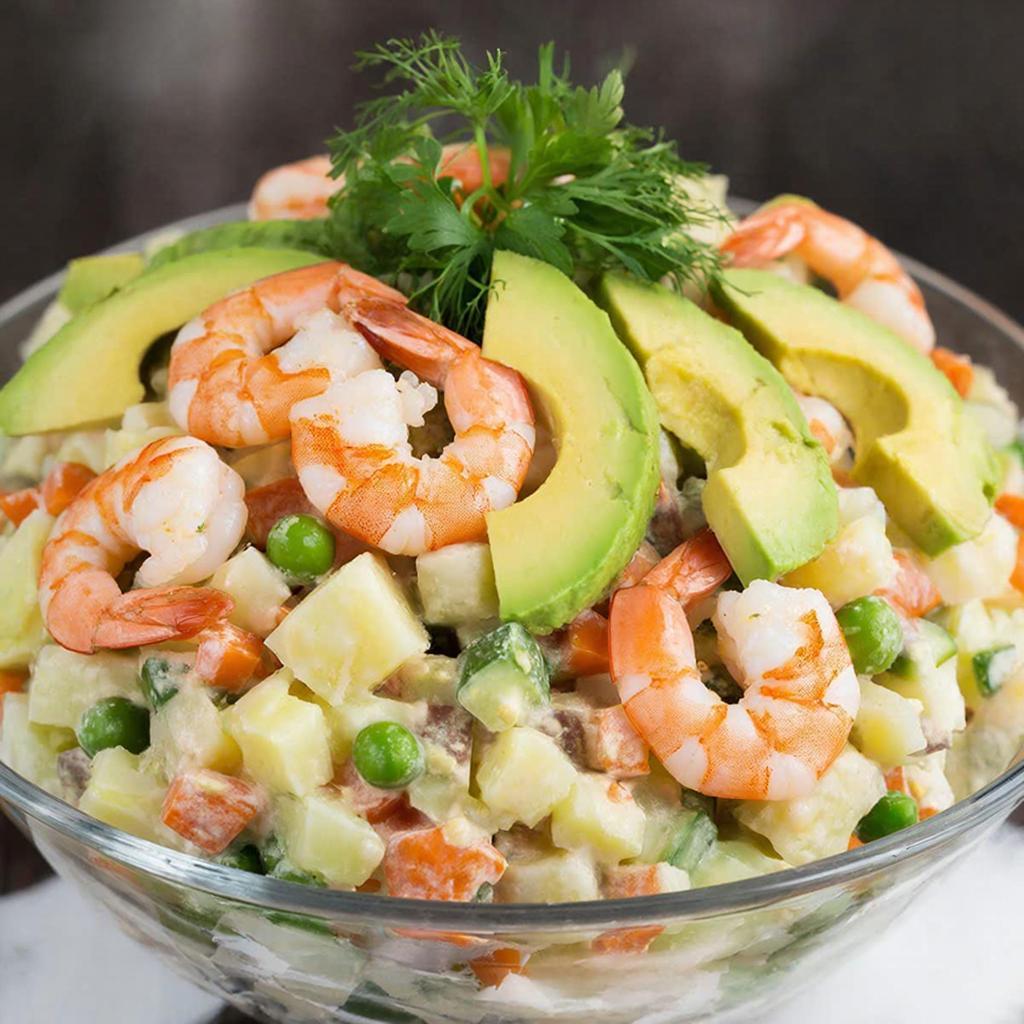 Как собрать оливье с креветками и авокадо