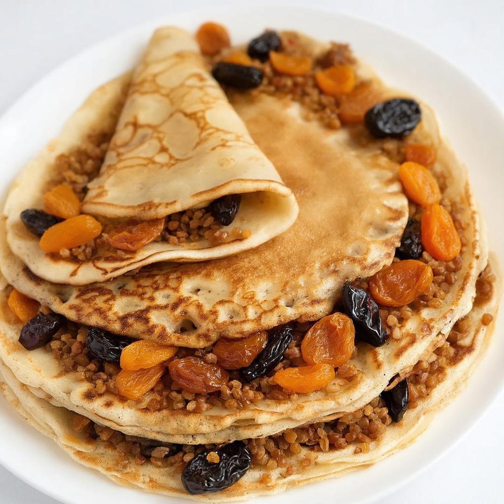 Короткий ответ: булгур дает плотную основу, а сухофрукты добавляют мягкую сладость и немного сочности. За счет этого начинка хорошо подходит для блинчиков, которые нужно сделать более основательными и удобными для сытной подачи.